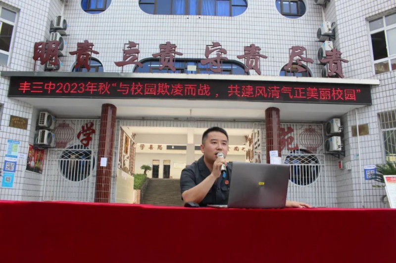 伴随着集合音乐的响起,同学们井然有序地到操场集合就坐。待现场安静了下来,反校园欺凌的法治课开始了……