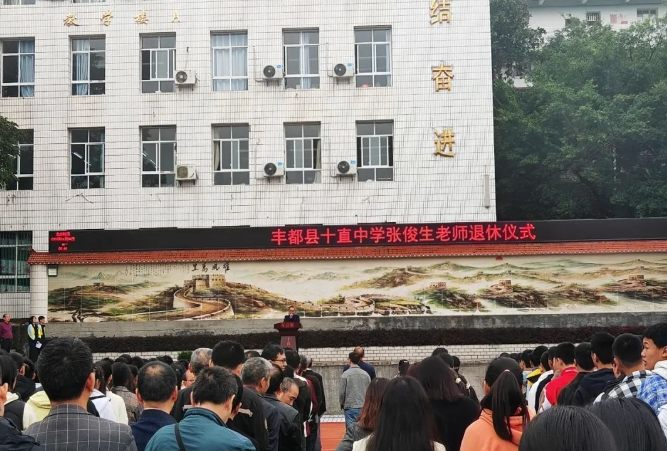 丰都十直中学党支部书记、校长陶学进致辞。他指出,张俊生老师为十直教育奉献了心血、智慧和热情,引领了一代又一代学生,帮助他们成长、学习和追求梦想。他谈到,张俊生用41年的教育生涯向我们诠释了一个优秀共产党员、优秀干部、优秀教师的担当,展现了一名人民教师的无限价值;41年的无私奉献,无数的学生有机会改变命运,去实现他们更大的价值;张老师身上务实、严谨、热爱教育、乐于奉献等精神将一直激励着十中人继续前进。(陈海东 胡玉成)
