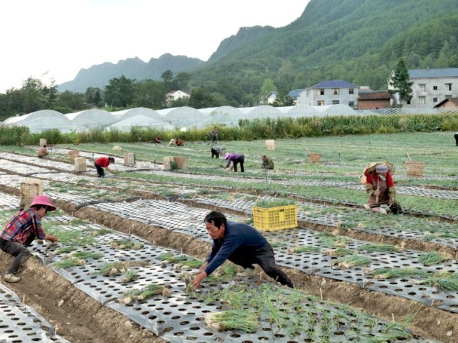 “目前,共有144名村民在基地内务工,其中脱贫户有20多人,每人年均收入在2万元以上。”皮国林说,接下来香葱种植规模将扩大到800亩,年产值预计能突破3000万元,将带动300多名农户实现就近就业。合作社成立后,皮国林为305户种植户建立了种植档案,实行统一标准管理、 统一加工销售,让农户不再担心种植、管理、销售等问题。合作社的成立进一步推动了香葱生产、经营走向规模化、规范化和标准化,调动了当地村民种植香葱的积极性。
